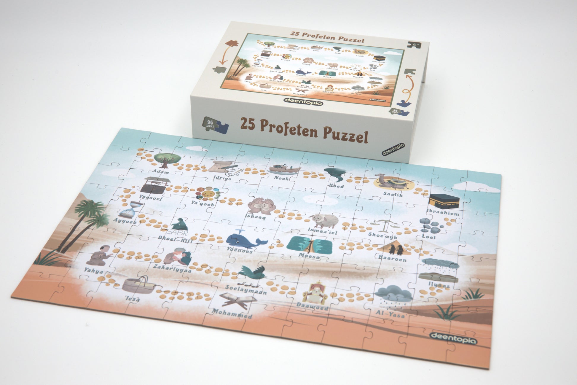 Allah, de Verhevene, heeft in de Koran 25 Profeten bij naam genoemd. Door het maken van deze puzzel ontdek je spelenderwijs wie deze profeten zijn. Met kleurrijke illustraties en een speels pad neemt deze puzzel kinderen én volwassenen mee op een leerzame reis langs de bekendste profeten.